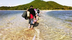 Điểm thú vị nhất trong hành trình chinh phục Điệp Sơn chính là đi bộ theo con đường mòn trên biển kéo dài gần 700 mét, nối liền hòn đảo giữa với đảo Điệp Sơn lớn. Con đường uốn lượn, rộng khoảng 1 mét và nằm sâu dưới mặt nước biển trong xanh chưa đến nửa mét.