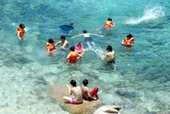 10:00 Đoàn trở vế tàu khởi hành về bán đảo Vịnh Đầm Môn dùng bữa trưa tại nhà hàng với các món Hải Sản phong phú. Sau đó đoàn đến với đảo Cỏ Ống lặn ngắm san hô – Bên dưới những tham rau câu là một thiên đường biển kỳ ảo mở ra trước mắt đẹp đến sững sờ. Muôn loại san hô với đủ màu sắc bày ra trước mắt. Nơi đây có nhiều rạn, khe, hang đá vậy nên san hô cứ bám vào đó mà sống tạo nên cảnh quan cực kỳ kỳ bí và sống động – Nhẹ bước trên thảm san hô thân mềm, tận tay chạm vào các loại san hô khác nhau như san hô não, san hô sừng nai, san hô thảm, tận mắt nhìn ngắm hình dáng kỳ lạ, màu sắc rực rỡ thật sự của chúng. (tùy theo điều kiện thời tiết có thể thay đổi để phú hợp với điều kiện thực tế)